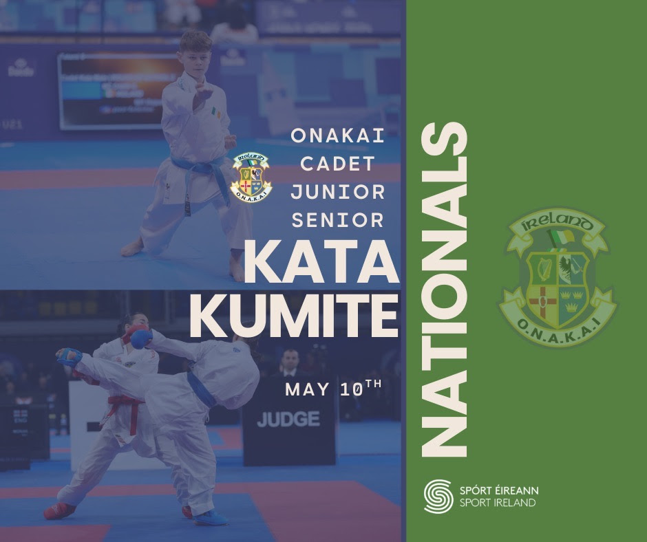 Cadet, Junior & Senior competitors — get ready! The National Championships 2026 will take place on Sunday 10th May Tallaght Leisure Centre, starting at 10:00 AM. New this year, there will be Mixed Team Kumite categories – Cadet, Junior & Senior. · 4 members per team · 2 Female & 2 Male · Team members DO NOT need to be from the same club. There also will be Team Kata Cadet & Junior Male Cadet & Junior Female Senior Male Senior Female Closing date to register: Sunday 3rd May Register online now through Sportdata